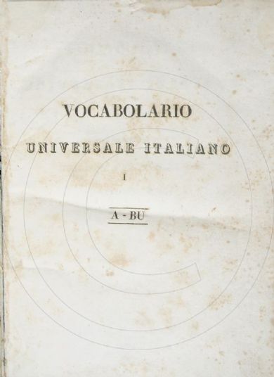 Vocabolario universale italiano / compilato a cura della Societą tipografica Tramater e C. - Napoli : dai torchi del Tramater, 1829-1840. 7 v. ; 4° (34 cm) Firenze, Biblioteca dell'Accademia della Crusca, DIZ.130.VOCA.2.1-7bis- Scheda OPAC Volumi dell'opera: Vol. 1 Vol. 2 Vol. 3 Vol. 4 Vol. 5 Vol. 6 Vol. 7 |