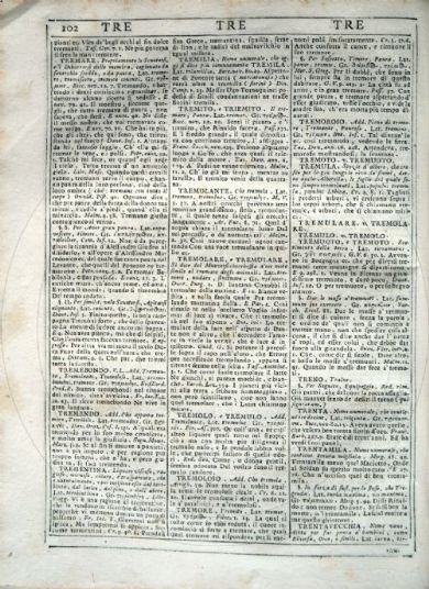 Vocabolario degli Accademici della Crusca Vocabolario degli Accademici della Crusca. Volume primo [-quinto]. - Quinta impressione. - In Venezia : appresso Francesco Pitteri, 1741. 5 v. ; 4° Firenze, Biblioteca dell'Accademia della Crusca, DIZ.115.1741.2.1-5- Scheda OPAC Volumi dell'opera: Vol. 1 Vol. 2 Vol. 3 Vol. 4 Vol. 5 |