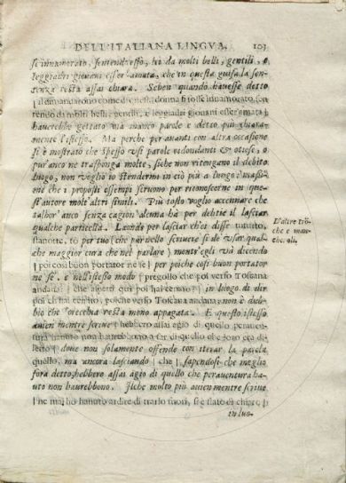 Beni, Paolo L'anticrusca overo Il paragone dell'italiana lingua : nel qual si mostra chiaramente che l'antica sia inculta e rozza e la moderna regolata e gentile / di Paolo Beni .... - Padova : In casa & a spese dell'autore, per B. Martini|1612. [8], 134, [5] p. ; 20 cm Firenze, Biblioteca dell'Accademia della Crusca, Fondo Migliorini 110- Scheda OPAC |
