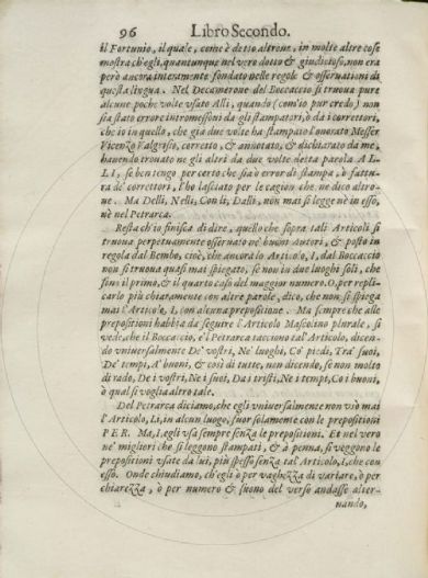 Ruscelli, Girolamo De' commentarii della lingua italiana del sig. Girolamo Ruscelli viterbese libri sette : ne' quali con facilità & copiosamente si tratta tutto quello che alla vera & perfetta notitia di detta lingua s'appartiene / hora posti in luce da Vincenzo Ruscelli ; con due Tauole, vna de' capitoli & l'altra delle cose più notabili .... - In Venetia : appresso Damian Zenaro, alla Salamandra, 1581. [16], 574, [2] p. ; 4° Firenze, Biblioteca dell'Accademia della Crusca, Fondo Migliorini 15- Scheda OPAC |