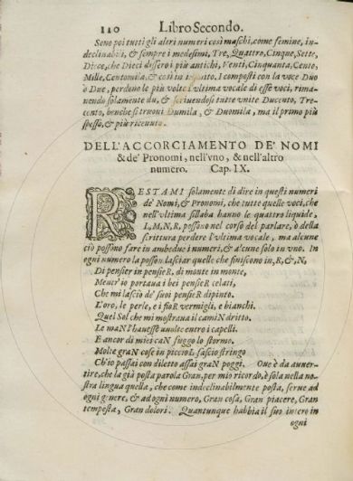 Ruscelli, Girolamo De' commentarii della lingua italiana del sig. Girolamo Ruscelli viterbese libri sette : ne' quali con facilità & copiosamente si tratta tutto quello che alla vera & perfetta notitia di detta lingua s'appartiene / hora posti in luce da Vincenzo Ruscelli ; con due Tauole, vna de' capitoli & l'altra delle cose più notabili .... - In Venetia : appresso Damian Zenaro, alla Salamandra, 1581. [16], 574, [2] p. ; 4° Firenze, Biblioteca dell'Accademia della Crusca, Fondo Migliorini 15- Scheda OPAC |