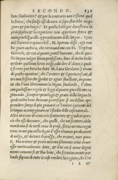 Tomitano, Bernardino Ragionamenti della lingua toscana : doue si parla del perfetto oratore, & poeta uolgari, ... diuisi in tre libri ... / dell'eccellente medico & philosopho Bernardin Tomitano. - In Venetia|In Venetia|per Giouanni de Farri et fratelli, al segno del Griffo|1545 : [Giouanni de Farri & fratelli], 1545. 439, [5] p. ; 8° Firenze, Biblioteca dell'Accademia della Crusca, 1.8.206- Scheda OPAC |