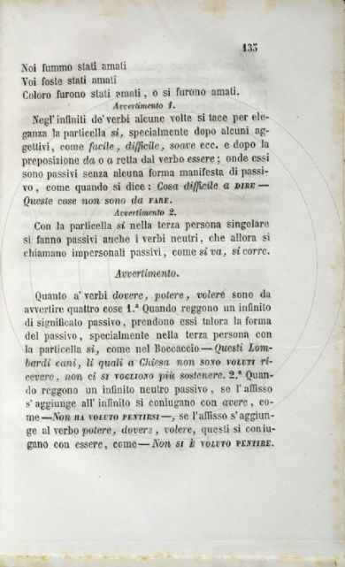 Rodinò, Leopoldo <1810-1882> Grammatica novissima della lingua italiana : per uso del liceo arcivescovile e de' seminari di Napoli / rinnovata e corretta da Leopoldo Rodinò sopra quella compilata nello studio di Basilio Puoti. - Napoli : dalla Tipografia Trani, 1856-1857. 3 v. in 2 ; 20 cm Firenze, Biblioteca dell'Accademia della Crusca, GRAM.43.ROD-p.1.1-2/3- Scheda OPAC Volumi dell'opera: Vol. 1 Voll. 2 e 3 |
