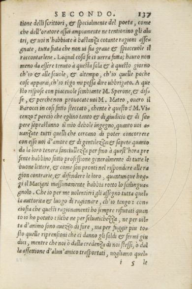 Tomitano, Bernardino Ragionamenti della lingua toscana : doue si parla del perfetto oratore, & poeta uolgari, ... diuisi in tre libri ... / dell'eccellente medico & philosopho Bernardin Tomitano. - In Venetia|In Venetia|per Giouanni de Farri et fratelli, al segno del Griffo|1545 : [Giouanni de Farri & fratelli], 1545. 439, [5] p. ; 8° Firenze, Biblioteca dell'Accademia della Crusca, 1.8.206- Scheda OPAC |