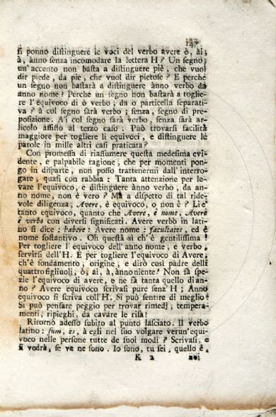 La Crusca in esame o sia Raccontamento di quanto è accaduto per ocasione di una lettera scritta da un amico all'altro. Unito a due libricciuoli, che hanno per titolo, primo: Osservazioni sopra i vocaboli ... secondo: Ragioni esposte dalla lettera H per la pretensione di entrare in tutto il verbo volgare Avere, e non finalmente nell'Ho, hai, ha, hanno. - Amsterdam [ma Venezia] : si vende da Domenico Occhi, 1740.
