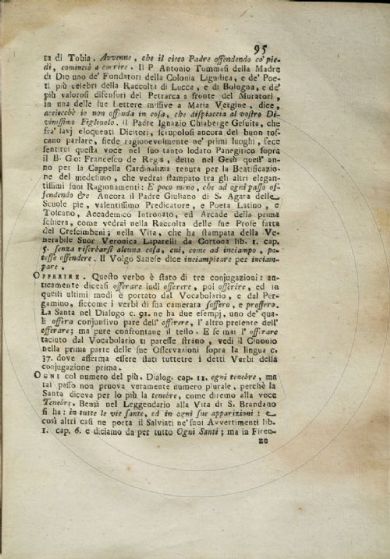 Gigli, Girolamo <1660-1722> Vocabolario cateriniano di Girolamo Gigli da lui lasciato imperfetto alla lettera R e che in questa seconda impressione si dà compito ove si spiegano e si difendono alcune voci, e frasi di s. Caterina da Siena usate da essa nelle sue opere, secondo il dialetto sanese, e sue proprie : con l'aggiunta della retrattazione del medesimo : della farsetta del Piato dell'H. di Pier Jacopo Martelli : e delle lettere di quasi tutte le Accademie d'Italia in approvazione della locuzione della santa. - A Manilla nell'isole Filippine [i. e. Lucca] : [s.n.], [dopo il 1722]. [2], ix, [1], xliv, 483 p., [1] c. di tav. : ill. ; 4° Firenze, Biblioteca dell'Accademia della Crusca, DIZ.220.CATERI./GIGL.1- Scheda OPAC |