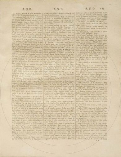 Alberti Di Villanova, Francesco <1737-1801> Dizionario universale critico enciclopedico della lingua italiana / dell'abate d'Alberti Di Villanuova. Tomo primo [-sesto]. - In Lucca : dalla stamperia di Domenico Marescandoli, 1797-1805. 6 v. ; 4° Firenze, Biblioteca dell'Accademia della Crusca, DIZ.130.ALBE.1.1-6- Scheda OPAC Volumi dell'opera: To. 1 To. 2 To. 3 To. 4 To. 5 To. 6 |