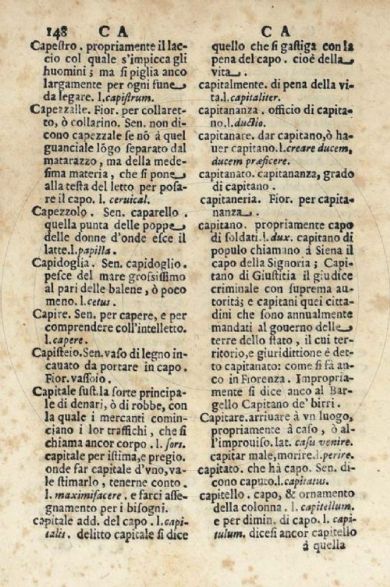 Politi, Adriano <1542-1625> Dittionario toscano compendio del vocabolario della Crusca : con la nota di tutte le differenze di lingua che sono trà questi due populi fiorentino, e senese / compilato dal sig. Adriano Politi. - Roma : Gio. Angelo Ruffinelli, 1614. Roma, Biblioteca nazionale centrale, 6. 11.G.47