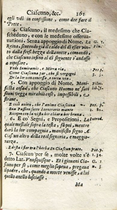 Mambelli, Marco Antonio Delle osservationi della lingua italiana, dal Cinonio Accademico Filergita raccolte in gratia d'vn predicator siciliano, parte seconda. - In Ferrara : per Alfonso, e Gio. Battista Maresti, stampatori episcopali, 1657. [12], 812, [4] p. ; 12° Firenze, Biblioteca dell'Accademia della Crusca, L.140.MAM-g- Scheda OPAC |