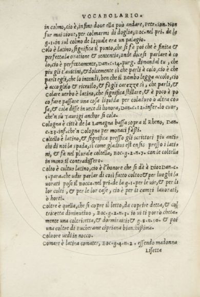 Vocabolario, grammatica, et orthographia de la lingua volgare d'Alberto Acharisio da Cento con ispositioni di molti luoghi di Dante, del Petrarca et del Boccaccio. - [S.l. : s.n.], 1543 (stampato in Cento : in casa de l'auttore, del mese di Zugno 1543).