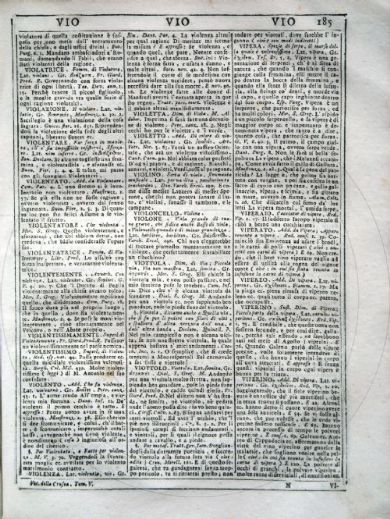 Vocabolario degli Accademici della Crusca Vocabolario degli Accademici della Crusca. Volume primo [-quinto]. - Quinta impressione. - In Venezia : appresso Francesco Pitteri, 1741. 5 v. ; 4° Firenze, Biblioteca dell'Accademia della Crusca, DIZ.115.1741.2.1-5- Scheda OPAC Volumi dell'opera: Vol. 1 Vol. 2 Vol. 3 Vol. 4 Vol. 5 |