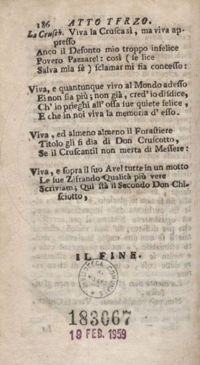 Il toscanismo e la Crusca o sia il cruscante impazzito : tragicomedia giocosa e novissima. - Milano : Carl'Antonio Lucca, 1739.