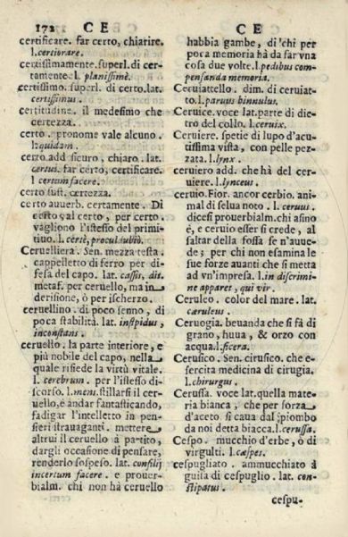 Politi, Adriano <1542-1625> Dittionario toscano compendio del vocabolario della Crusca : con la nota di tutte le differenze di lingua che sono trà questi due populi fiorentino, e senese / compilato dal sig. Adriano Politi. - Roma : Gio. Angelo Ruffinelli, 1614. Roma, Biblioteca nazionale centrale, 6. 11.G.47