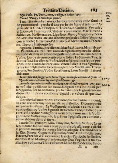 Della lingua toscana di Benedetto Buommattei pubblico lettor di essa nello Studio pisano e nell'Accademia fiorentina libri due .... - Impressione terza. - In Firenze : per Zanobi Pignoni, 1643.