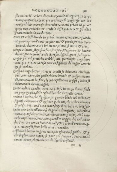 Accarisi, Alberto Vocabolario, grammatica, et orthographia de la lingua volgare d'Alberto Acharisio da Cento con ispositioni di molti luoghi di Dante, del Petrarca et del Boccaccio. - [S.l. : s.n.], 1543 (stampato in Cento : in casa de l'auttore, del mese di Zugno 1543). [4], 316 c. ; 4° Firenze, Biblioteca dell'Accademia della Crusca, Fondo Migliorini 11- Scheda OPAC |