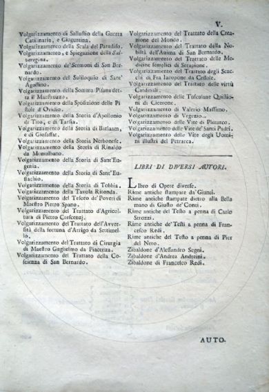Firenze, Biblioteca dell'Accademia della Crusca, DIZ.115.1741.1.1-5bis- Scheda OPAC