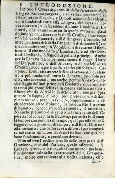 Bosolini, Stefano Midolla letteraria della lingua italiana purgata, e corretta ... cui s'aggiunge una midolla di lettere familiari per li principianti / opera di Stefano Bosolini padovano. - In Venezia : appresso Sebastiano Coleti, 1724. [8], 193 p. ; 15 cm Firenze, Biblioteca dell'Accademia della Crusca, Fondo Migliorini 103- Scheda OPAC |