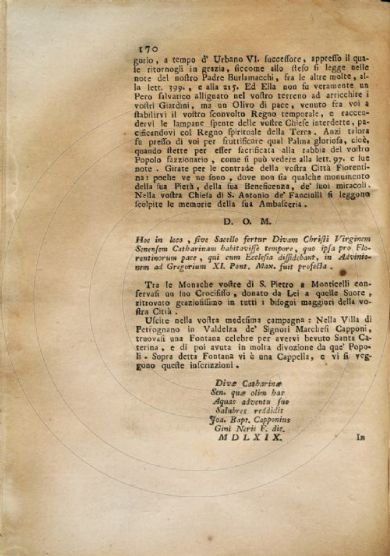 Gigli, Girolamo <1660-1722> Vocabolario cateriniano di Girolamo Gigli da lui lasciato imperfetto alla lettera R e che in questa seconda impressione si dà compito ove si spiegano e si difendono alcune voci, e frasi di s. Caterina da Siena usate da essa nelle sue opere, secondo il dialetto sanese, e sue proprie : con l'aggiunta della retrattazione del medesimo : della farsetta del Piato dell'H. di Pier Jacopo Martelli : e delle lettere di quasi tutte le Accademie d'Italia in approvazione della locuzione della santa. - A Manilla nell'isole Filippine [i. e. Lucca] : [s.n.], [dopo il 1722]. [2], ix, [1], xliv, 483 p., [1] c. di tav. : ill. ; 4° Firenze, Biblioteca dell'Accademia della Crusca, DIZ.220.CATERI./GIGL.1- Scheda OPAC |