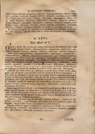 Amenta, Niccolò Della lingua nobile d'Italia, e del modo di leggiadramente scrivere in essa, non che di perfettamente parlare / di Niccolò Amenta ... parte prima [-seconda]. - In Napoli : nella Stamperia ed a spese di Antonio Muzio, 1723-1724. 2 v. ; 23 cm Firenze, Biblioteca dell'Accademia della Crusca, Fondo Migliorini 84/86- Scheda OPAC Volumi dell'opera: Pt. 1 Pt. 2 |