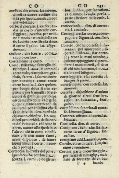 Politi, Adriano <1542-1625> Dittionario toscano compendio del vocabolario della Crusca : con la nota di tutte le differenze di lingua che sono trà questi due populi fiorentino, e senese / compilato dal sig. Adriano Politi. - Roma : Gio. Angelo Ruffinelli, 1614. Roma, Biblioteca nazionale centrale, 6. 11.G.47