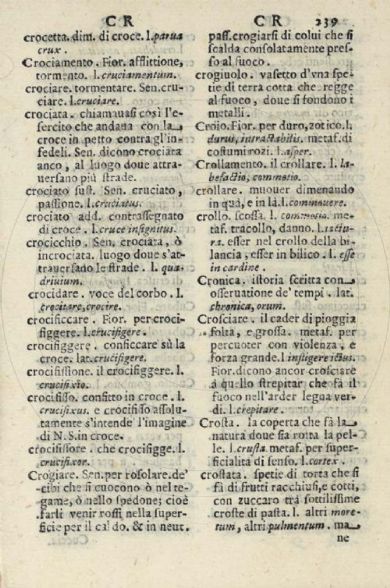 Politi, Adriano <1542-1625> Dittionario toscano compendio del vocabolario della Crusca : con la nota di tutte le differenze di lingua che sono trà questi due populi fiorentino, e senese / compilato dal sig. Adriano Politi. - Roma : Gio. Angelo Ruffinelli, 1614. Roma, Biblioteca nazionale centrale, 6. 11.G.47