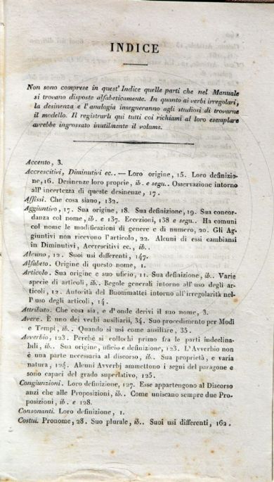 Ambrosoli, Francesco <1797-1868> Grammatica della lingua italiana compilata da Francesco Ambrosoli. - Seconda edizione corretta ed ampliata dall'autore. - Milano : per Antonio Fontana, 1829. vii, [1], 262, [2] ; 12° Firenze, Biblioteca dell'Accademia della Crusca, GRAM.43.AMB-w- Scheda OPAC |