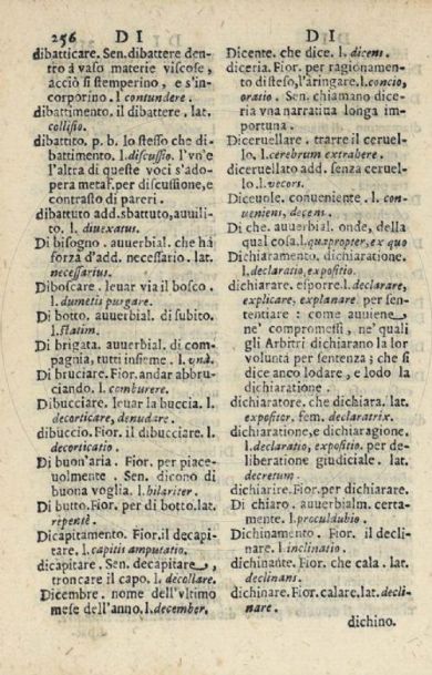 Politi, Adriano <1542-1625> Dittionario toscano compendio del vocabolario della Crusca : con la nota di tutte le differenze di lingua che sono trà questi due populi fiorentino, e senese / compilato dal sig. Adriano Politi. - Roma : Gio. Angelo Ruffinelli, 1614. Roma, Biblioteca nazionale centrale, 6. 11.G.47