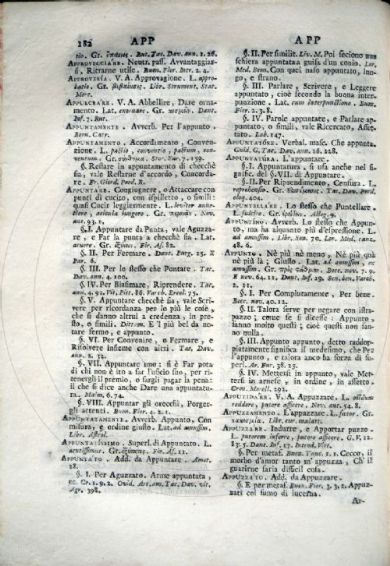 Vocabolario degli Accademici della Crusca compendiato secondo la quarta ed ultima impressione di Firenze corretta, ed accresciuta, cominciata l'anno 1729, e terminata nel mdccxxxviii. Tomo primo [-quinto]. - In Venezia : appresso Lorenzo Baseggio, 1741.