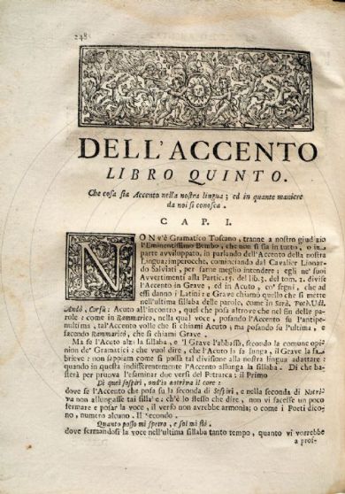 Amenta, Niccolò Della lingua nobile d'Italia, e del modo di leggiadramente scrivere in essa, non che di perfettamente parlare / di Niccolò Amenta ... parte prima [-seconda]. - In Napoli : nella Stamperia ed a spese di Antonio Muzio, 1723-1724. 2 v. ; 23 cm Firenze, Biblioteca dell'Accademia della Crusca, Fondo Migliorini 84/86- Scheda OPAC Volumi dell'opera: Pt. 1 Pt. 2 |