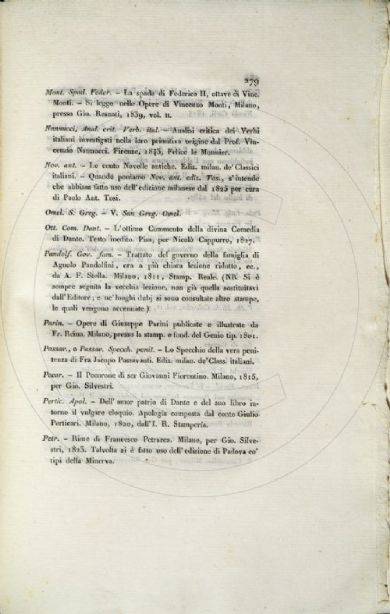 Gherardini, Giovanni <1778-1861> Appendice alle grammatiche italiane o sia Note grammaticali : estratte dall'opera intitolata Voci e maniere di dire italiane additate a' futuri vocabolaristi / da Giovanni Gherardini. - Milano : per G. B. Bianchi di Giacomo, 1843. 290 p. ; 25 cm Firenze, Biblioteca dell'Accademia della Crusca, GRAM.43.GHE-v.1- Scheda OPAC |