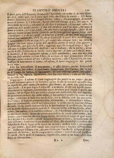 Amenta, Niccolò Della lingua nobile d'Italia, e del modo di leggiadramente scrivere in essa, non che di perfettamente parlare / di Niccolò Amenta ... parte prima [-seconda]. - In Napoli : nella Stamperia ed a spese di Antonio Muzio, 1723-1724. 2 v. ; 23 cm Firenze, Biblioteca dell'Accademia della Crusca, Fondo Migliorini 84/86- Scheda OPAC Volumi dell'opera: Pt. 1 Pt. 2 |
