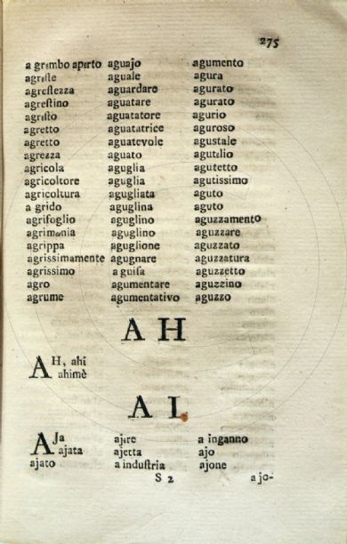 Gigli, Girolamo <1660-1722> Regole per la toscana favella : dichiarate per la piu stretta, e piu larga osservanza in dialogo tra maestro, e scolare. Con un saggio di tutti gl'idiomi toscani; ed una nuova prosod́a per la guista pronunzia di tutte le voci della lingua. Operetta ordinata all'istruzione dell'illustriss... signore D. Alessandro Ruspoli .... - In Roma : nella stamperia di Antonio de' Rossi, nella strada del Seminario romano, vicino alla rotonda, 1721. [24], 598, [1] p. ; 8° Firenze, Biblioteca dell'Accademia della Crusca, Fondo Migliorini 94- Scheda OPAC |