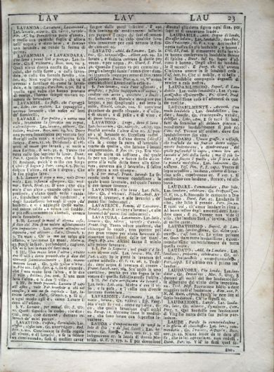 Vocabolario degli Accademici della Crusca Vocabolario degli Accademici della Crusca. Volume primo [-quinto]. - Quinta impressione. - In Venezia : appresso Francesco Pitteri, 1741. 5 v. ; 4° Firenze, Biblioteca dell'Accademia della Crusca, DIZ.115.1741.2.1-5- Scheda OPAC Volumi dell'opera: Vol. 1 Vol. 2 Vol. 3 Vol. 4 Vol. 5 |