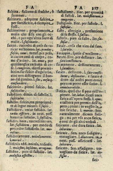 Politi, Adriano <1542-1625> Dittionario toscano compendio del vocabolario della Crusca : con la nota di tutte le differenze di lingua che sono trà questi due populi fiorentino, e senese / compilato dal sig. Adriano Politi. - Roma : Gio. Angelo Ruffinelli, 1614. Roma, Biblioteca nazionale centrale, 6. 11.G.47