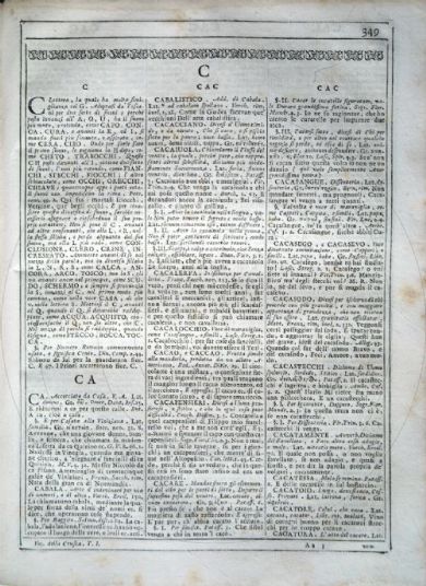 Vocabolario degli Accademici della Crusca Vocabolario degli Accademici della Crusca. Volume primo [-quinto]. - Quinta impressione. - In Venezia : appresso Francesco Pitteri, 1741. 5 v. ; 4° Firenze, Biblioteca dell'Accademia della Crusca, DIZ.115.1741.2.1-5- Scheda OPAC Volumi dell'opera: Vol. 1 Vol. 2 Vol. 3 Vol. 4 Vol. 5 |