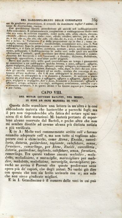 Cap. 8: Del mutar lettere davanti, nel mezzo, in fine ad ogni maniera di voci