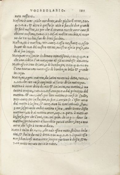 Accarisi, Alberto Vocabolario, grammatica, et orthographia de la lingua volgare d'Alberto Acharisio da Cento con ispositioni di molti luoghi di Dante, del Petrarca et del Boccaccio. - [S.l. : s.n.], 1543 (stampato in Cento : in casa de l'auttore, del mese di Zugno 1543). [4], 316 c. ; 4° Firenze, Biblioteca dell'Accademia della Crusca, Fondo Migliorini 11- Scheda OPAC |