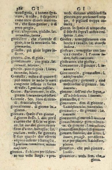 Politi, Adriano <1542-1625> Dittionario toscano compendio del vocabolario della Crusca : con la nota di tutte le differenze di lingua che sono trà questi due populi fiorentino, e senese / compilato dal sig. Adriano Politi. - Roma : Gio. Angelo Ruffinelli, 1614. Roma, Biblioteca nazionale centrale, 6. 11.G.47