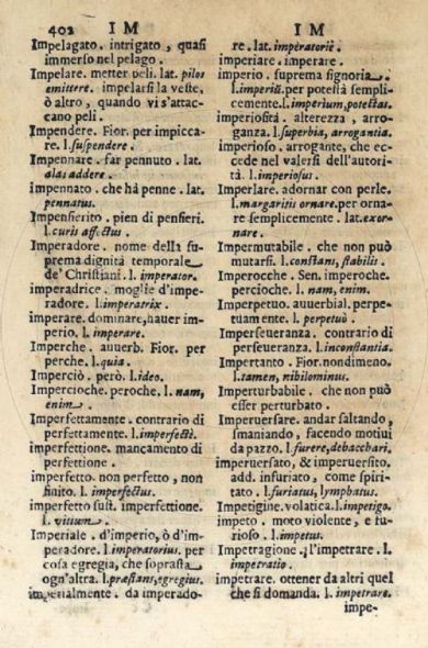 Politi, Adriano <1542-1625> Dittionario toscano compendio del vocabolario della Crusca : con la nota di tutte le differenze di lingua che sono trà questi due populi fiorentino, e senese / compilato dal sig. Adriano Politi. - Roma : Gio. Angelo Ruffinelli, 1614. Roma, Biblioteca nazionale centrale, 6. 11.G.47
