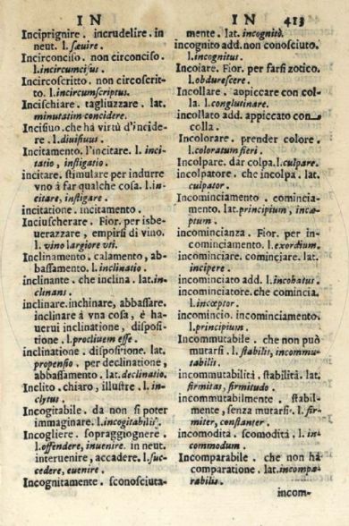 Politi, Adriano <1542-1625> Dittionario toscano compendio del vocabolario della Crusca : con la nota di tutte le differenze di lingua che sono trà questi due populi fiorentino, e senese / compilato dal sig. Adriano Politi. - Roma : Gio. Angelo Ruffinelli, 1614. Roma, Biblioteca nazionale centrale, 6. 11.G.47