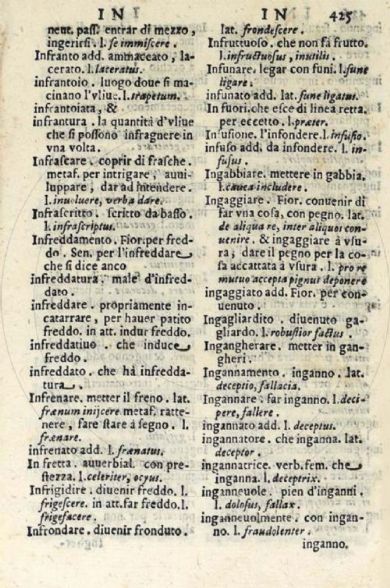Politi, Adriano <1542-1625> Dittionario toscano compendio del vocabolario della Crusca : con la nota di tutte le differenze di lingua che sono trà questi due populi fiorentino, e senese / compilato dal sig. Adriano Politi. - Roma : Gio. Angelo Ruffinelli, 1614. Roma, Biblioteca nazionale centrale, 6. 11.G.47