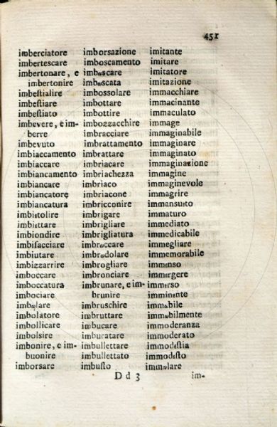 Gigli, Girolamo <1660-1722> Regole per la toscana favella : dichiarate per la piu stretta, e piu larga osservanza in dialogo tra maestro, e scolare. Con un saggio di tutti gl'idiomi toscani; ed una nuova prosod́a per la guista pronunzia di tutte le voci della lingua. Operetta ordinata all'istruzione dell'illustriss... signore D. Alessandro Ruspoli .... - In Roma : nella stamperia di Antonio de' Rossi, nella strada del Seminario romano, vicino alla rotonda, 1721. [24], 598, [1] p. ; 8° Firenze, Biblioteca dell'Accademia della Crusca, Fondo Migliorini 94- Scheda OPAC |