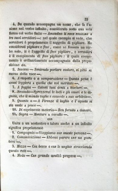 Rodinò, Leopoldo <1810-1882> Grammatica novissima della lingua italiana : per uso del liceo arcivescovile e de' seminari di Napoli / rinnovata e corretta da Leopoldo Rodinò sopra quella compilata nello studio di Basilio Puoti. - Napoli : dalla Tipografia Trani, 1856-1857. 3 v. in 2 ; 20 cm Firenze, Biblioteca dell'Accademia della Crusca, GRAM.43.ROD-p.1.1-2/3- Scheda OPAC Volumi dell'opera: Vol. 1 Voll. 2 e 3 |