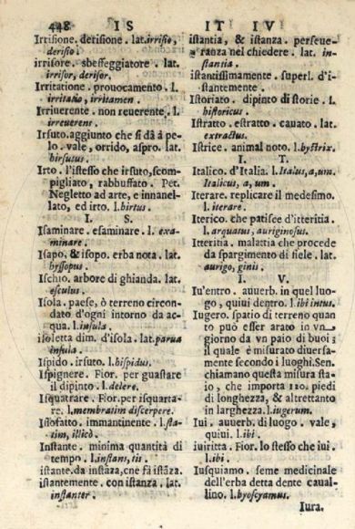 Politi, Adriano <1542-1625> Dittionario toscano compendio del vocabolario della Crusca : con la nota di tutte le differenze di lingua che sono trà questi due populi fiorentino, e senese / compilato dal sig. Adriano Politi. - Roma : Gio. Angelo Ruffinelli, 1614. Roma, Biblioteca nazionale centrale, 6. 11.G.47
