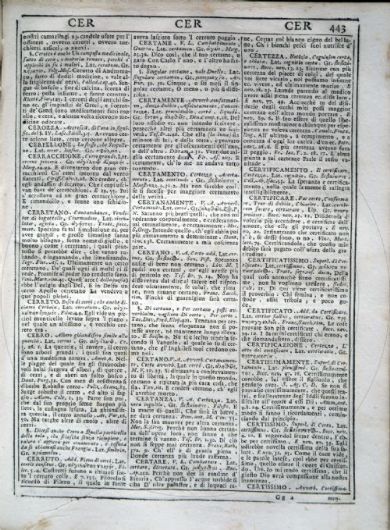 Vocabolario degli Accademici della Crusca Vocabolario degli Accademici della Crusca. Volume primo [-quinto]. - Quinta impressione. - In Venezia : appresso Francesco Pitteri, 1741. 5 v. ; 4° Firenze, Biblioteca dell'Accademia della Crusca, DIZ.115.1741.2.1-5- Scheda OPAC Volumi dell'opera: Vol. 1 Vol. 2 Vol. 3 Vol. 4 Vol. 5 |