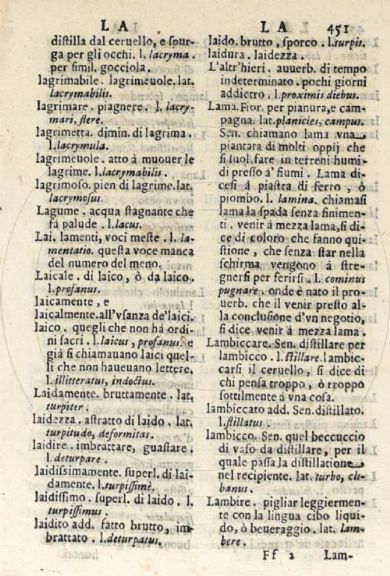 Politi, Adriano <1542-1625> Dittionario toscano compendio del vocabolario della Crusca : con la nota di tutte le differenze di lingua che sono trà questi due populi fiorentino, e senese / compilato dal sig. Adriano Politi. - Roma : Gio. Angelo Ruffinelli, 1614. Roma, Biblioteca nazionale centrale, 6. 11.G.47