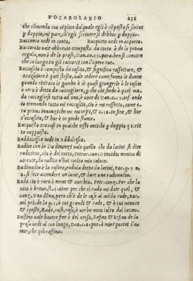 Vocabolario, grammatica, et orthographia de la lingua volgare d'Alberto Acharisio da Cento con ispositioni di molti luoghi di Dante, del Petrarca et del Boccaccio. - [S.l. : s.n.], 1543 (stampato in Cento : in casa de l'auttore, del mese di Zugno 1543).