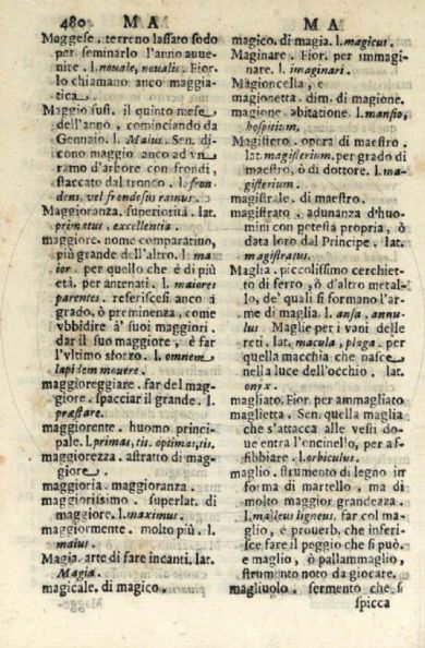Politi, Adriano <1542-1625> Dittionario toscano compendio del vocabolario della Crusca : con la nota di tutte le differenze di lingua che sono trà questi due populi fiorentino, e senese / compilato dal sig. Adriano Politi. - Roma : Gio. Angelo Ruffinelli, 1614. Roma, Biblioteca nazionale centrale, 6. 11.G.47
