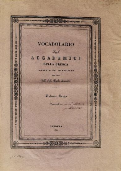 Vocabolario degli Accademici della Crusca. - Verona : Paolo Libanti, 1836.