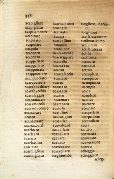 Gigli, Girolamo <1660-1722> Regole per la toscana favella : dichiarate per la piu stretta, e piu larga osservanza in dialogo tra maestro, e scolare. Con un saggio di tutti gl'idiomi toscani; ed una nuova prosod́a per la guista pronunzia di tutte le voci della lingua. Operetta ordinata all'istruzione dell'illustriss... signore D. Alessandro Ruspoli .... - In Roma : nella stamperia di Antonio de' Rossi, nella strada del Seminario romano, vicino alla rotonda, 1721. [24], 598, [1] p. ; 8° Firenze, Biblioteca dell'Accademia della Crusca, Fondo Migliorini 94- Scheda OPAC |